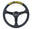 הגה ספורט NRG (350 מ"מ / 1.5 אינץ' עמוק) עור שחור/תפר זהב עם חישורים מוצקים שחורים מט